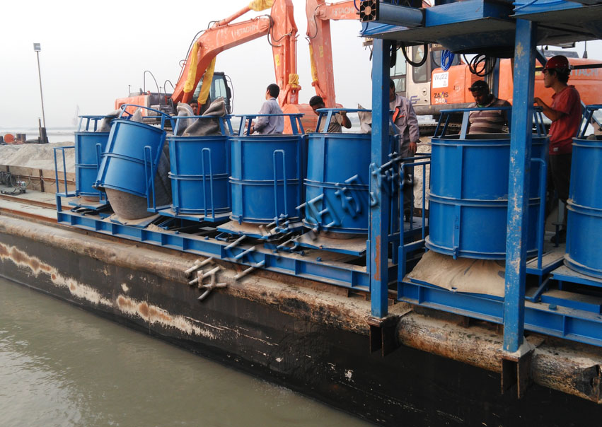 在帕德瑪河道整治項目中,安丘博陽機械制造有限公司承接水電港航帕德瑪大橋主體工程——自動拋袋機項目,這是我公司專業(yè)的技術(shù)團隊經(jīng)過潛心研究,精心實驗,創(chuàng)造出從裝袋、稱重到拋袋的一體化的整套方案。