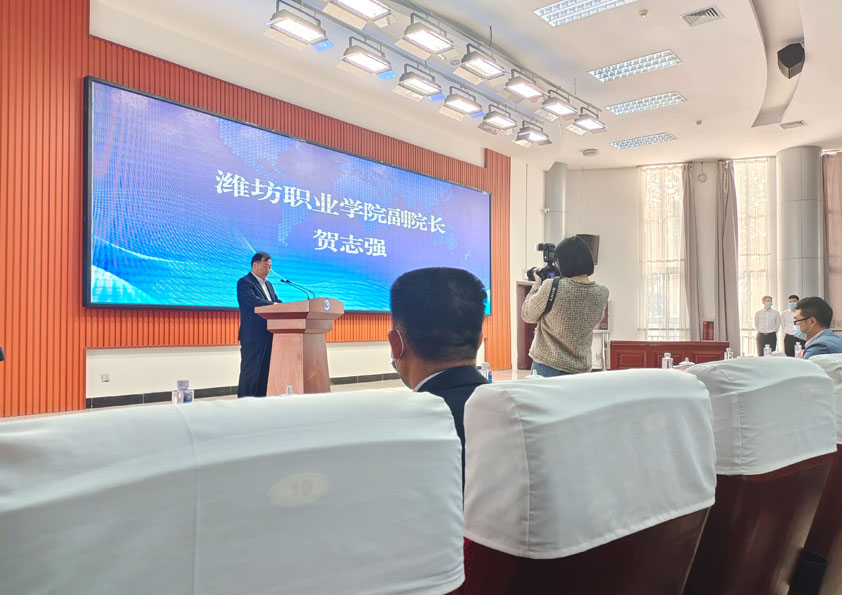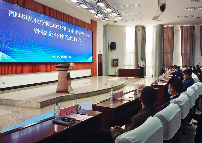 2021年10月21日,濰坊職業(yè)學(xué)院2021年度企業(yè)捐贈(zèng)儀式暨校企合作簽約儀式在濰坊職業(yè)學(xué)院隆重召開(kāi)。濰坊職業(yè)學(xué)院黨委書記馬躍啟、濰坊職業(yè)學(xué)院黨委副書記、副院長(zhǎng)桑福嶺、濰坊職業(yè)學(xué)院副院長(zhǎng)賀志強(qiáng)參加會(huì)議,安丘博陽(yáng)機(jī)械制造有限公司總經(jīng)理閆吉祥受邀參加會(huì)議。會(huì)議由濰坊職業(yè)學(xué)院黨委書記馬躍啟致辭,馬書記指出校企合作意義深遠(yuǎn),院校與企業(yè)要充分發(fā)揮雙方優(yōu)勢(shì),堅(jiān)持主動(dòng)服務(wù)國(guó)家經(jīng)濟(jì)社會(huì)發(fā)展需求,服務(wù)戰(zhàn)略性新興產(chǎn)業(yè)需求,服務(wù)新工科、新農(nóng)科、新醫(yī)科、新文科建設(shè),旨在政府搭臺(tái)、企業(yè)支持、高校對(duì)接共建共享的原則。深化產(chǎn)教融合,促進(jìn)教育鏈、人才鏈與產(chǎn)業(yè)鏈創(chuàng)新經(jīng)驗(yàn)有機(jī)銜接,依托產(chǎn)業(yè)和技術(shù)的新需求,培養(yǎng)支撐經(jīng)濟(jì)社會(huì)發(fā)展需要的高數(shù)字專門人才,實(shí)現(xiàn)高校與企業(yè)人才培養(yǎng)的合作共贏。