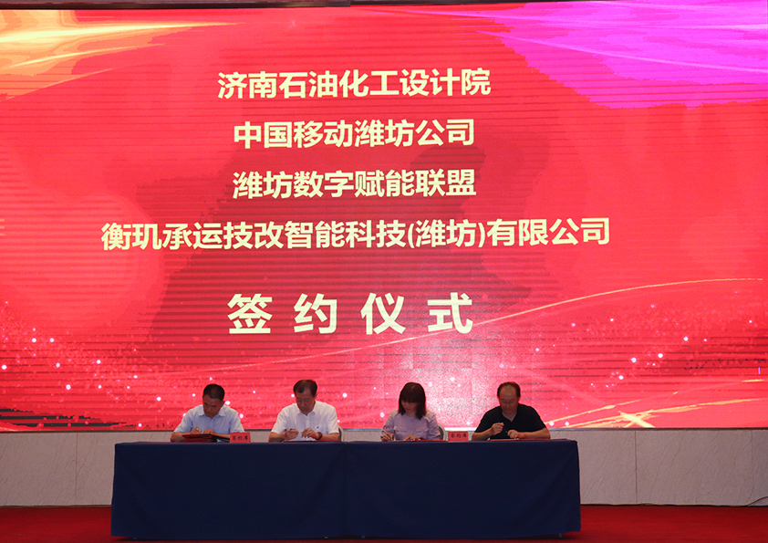 會上,安丘博陽機(jī)械制造有限公司總經(jīng)理閆吉祥與山東省工業(yè)和信息化廳規(guī)劃與技改處處長王楗夫共同為衡璣承運(yùn)技改智能科技(濰坊)有限公司揭牌。并與濟(jì)南石油化工設(shè)計(jì)院、中國移動(dòng)濰坊分公司、濰坊數(shù)字賦能聯(lián)盟、濰坊海吉潤玻璃鋼有限公司、瑞福油脂股份有限公司等九家公司簽訂合作協(xié)議。