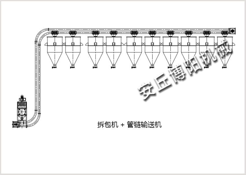 四、多點出料管鏈輸送機應(yīng)用:可給多個料倉、多個反應(yīng)釜、多臺混合機、多臺設(shè)備供料 等